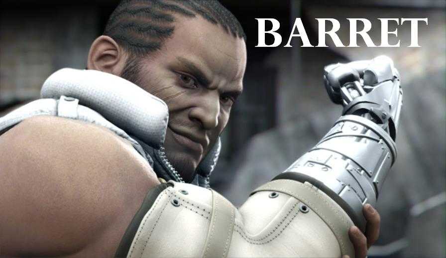 Barret est un leader charismatique et un homme au bon coeur. Ayant perdu sa femme lors de la destruction de son village par la shinra, Barett hait tout ce qui touche à cette entreprise. Il entreprit de sauver la planète de la Shinra, tout en veillant sur sa fille adoptive, Marlène.